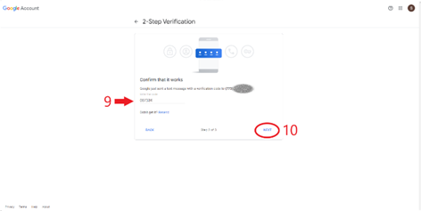 7.After receiving your code there will be a section to enter in that code ,Once the code is entered select Next