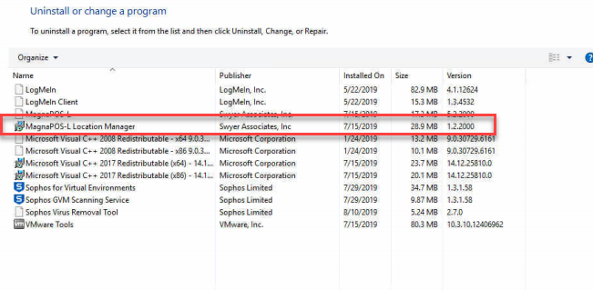 1. Uninstall MagnaPOS-L Location Manager from the Current PC/Server this is installed on.