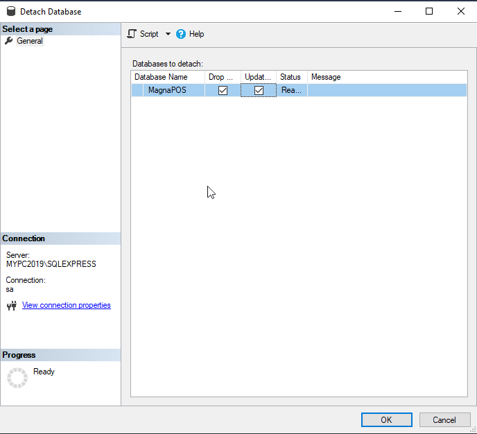 1. When moving the database along with the software to another PC/Server, follow the steps below to Detach and Attach the DB.