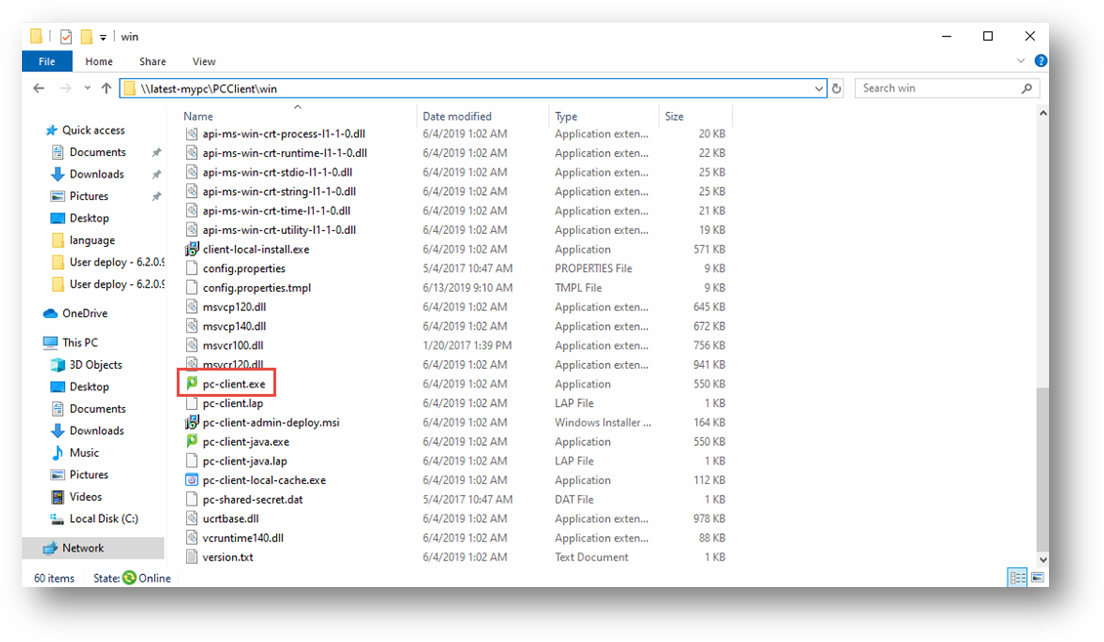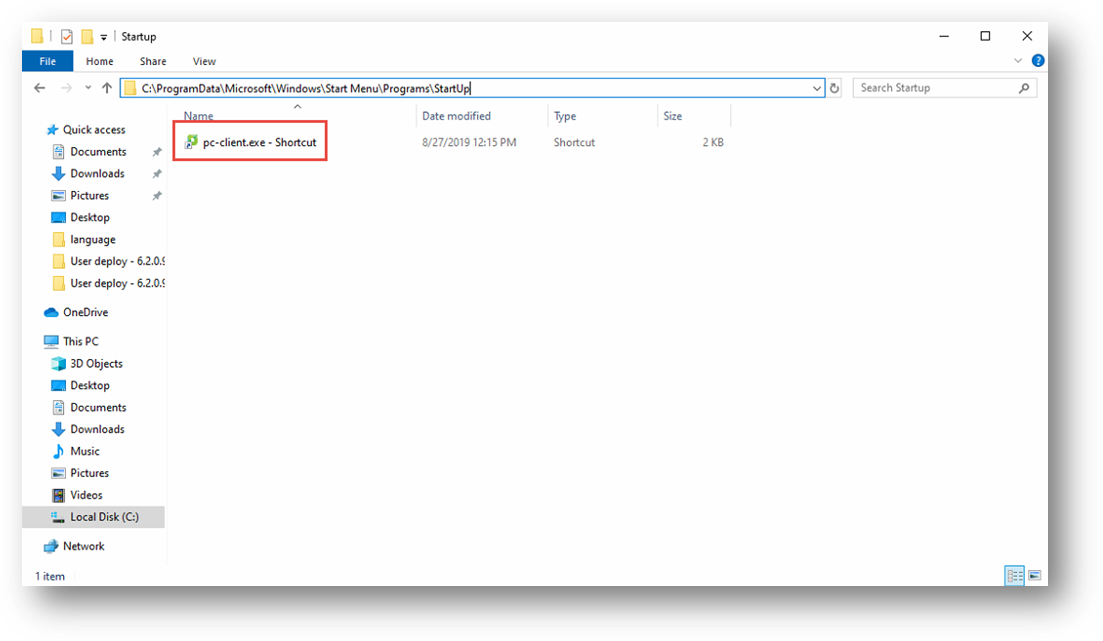 3. Create a shortcut of “pc-client.exe” from \\ServerName\PCClient\win and add this shortcut to the All Users Startup Directory (see below for directory location).