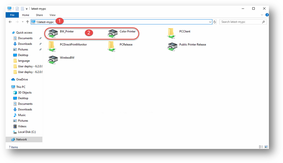 Add both Color and BW print queues (Make sure you add the correct print queues setup for Print ONLY), this will download the driver as well.