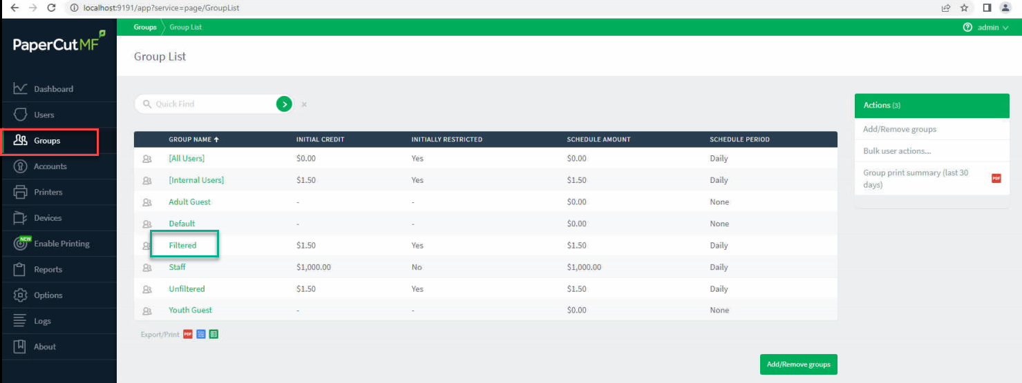 If you are provided funds/quotas to patrons for free printing this is done under the GROUPS tab in PaperCut. If there are any issues with the server, lost power, reboots during this nightly sync process, then you may have to manually add the quota to groups. Below will step you through this: