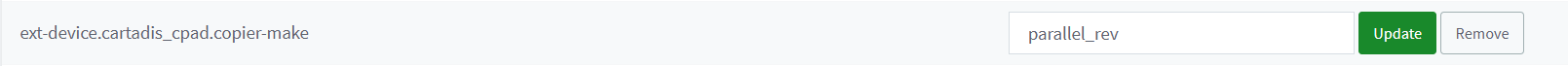 When using a SHARP for copy control, this field is set to 'parallel' by default. Go to DEVICES > Select device > ADVANCED CONFIG > PG1. Find ‘ext-device.cartadis_cpad.copier-make’ and change to 'parallel_rev'.