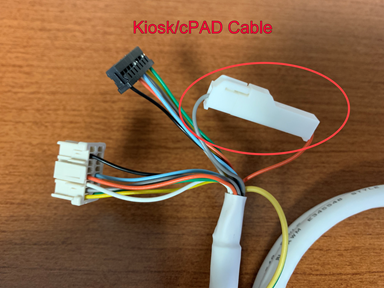 The Kiosk/cPAD Cable has 2 single-wire connectors, which must be plugged together (See Picture Below). This connector enables the copier's Color ButtonTBS9900.