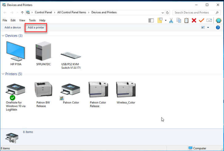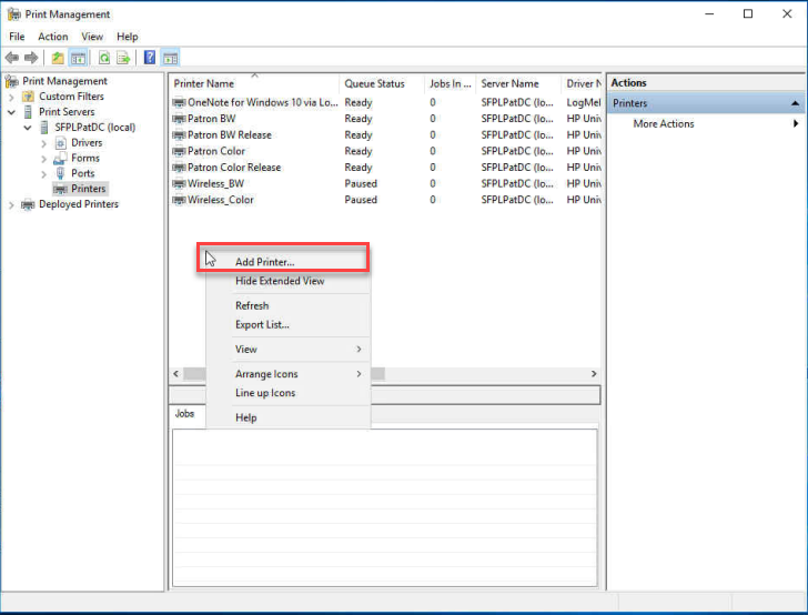 - Go to “Print Management”, or “Device and Printers” and ADD PRINTER