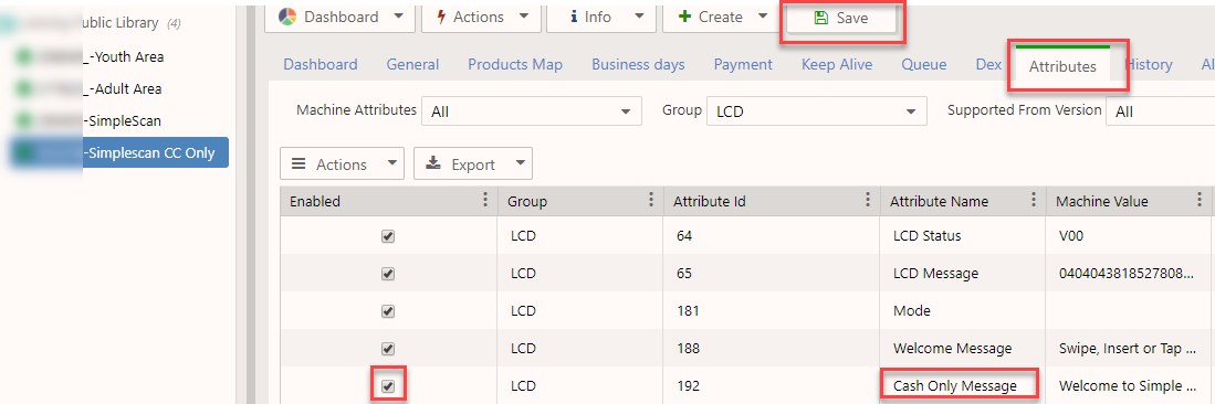 - The Cashless MDB address attribute must be enabled on the Machine within the Nayax Portal. If not enabled, see below: