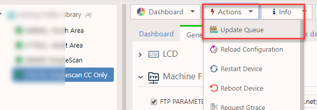 Select Actions > Update Queue to send the settings to device.