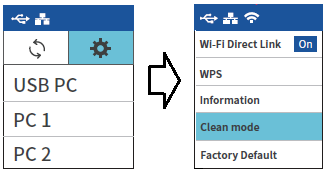 Use the clean mode by pressing the setting icon (gear icon) on the screen and then choose [Clean mode]. Finally, press the Scan button. The roller will be automatically rotated a few inches. Continue to wipe the roller until they are completely cleaned.