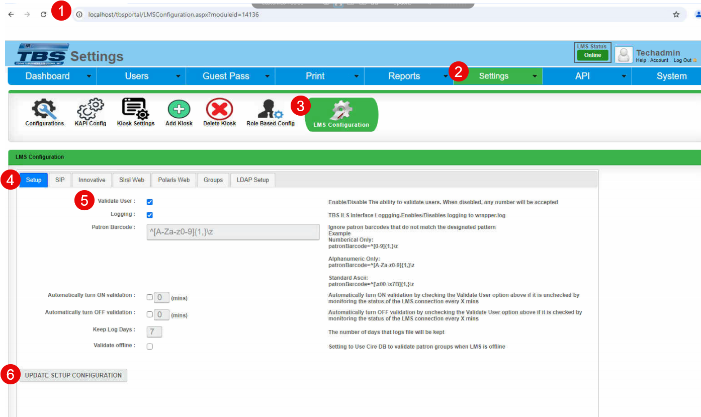 1. Log into TBS Portal with a user account which has an admin role/access.