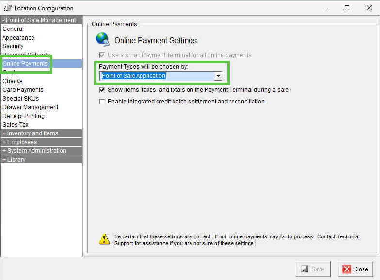 NOTE: Please make sure the Enterprise Manager or Location Manager has the following setting, otherwise the Verifone Terminal will not work correctly, and you will get an error message when you click on "Process".