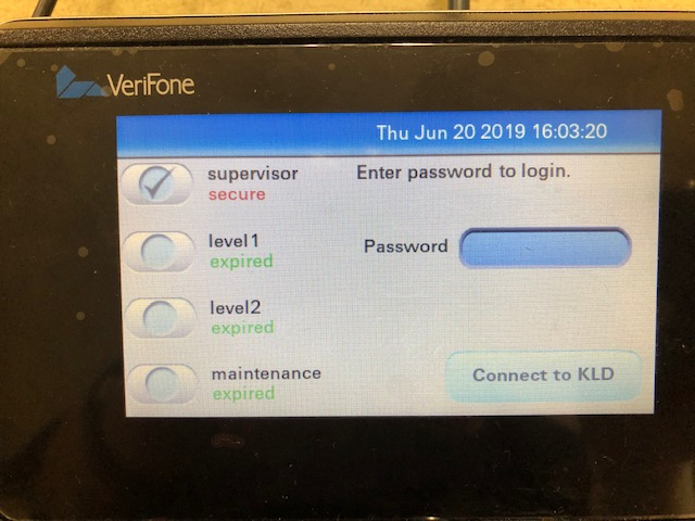 2. On the MX915/MX925 Verifone Terminal, press the keypad keys 1, 5 and 9 at the same time. This will bring you to the device setup mode. You will hear a beep and a message showing "APPLICATION HALTED." After a few seconds, you will see a screen appear, prompting you for a password.