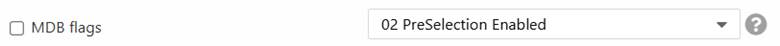 GENERAL > MDB tab - Configure ‘MDB Flags’ to be ’02 PreSelection Enabled’.