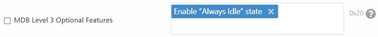 GENERAL > MDB tab - Configure ‘MDB Level 3 Optional Features’ to be ‘Enable “Always Idle” State’.
