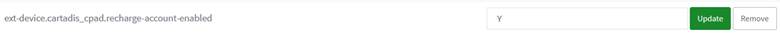 This value under DEVICES > Select device > ADVANCED CONFIG > PG2 and find ‘ext-device.cartadis_cpad.recharge-account-enabled’ must be set to N.