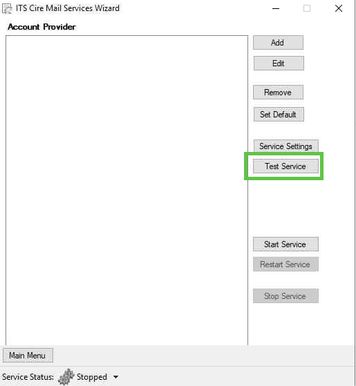 10. Go back to the "MerdinWizard.exe" and choose Test Service. You should see the "Service Status" showing started, when you are at this screen.
